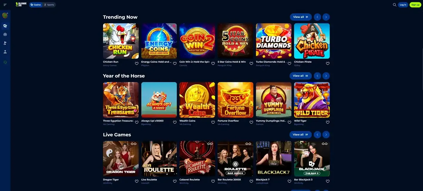 Quels types de jeux sont disponibles sur Billionaire Spin Casino ?